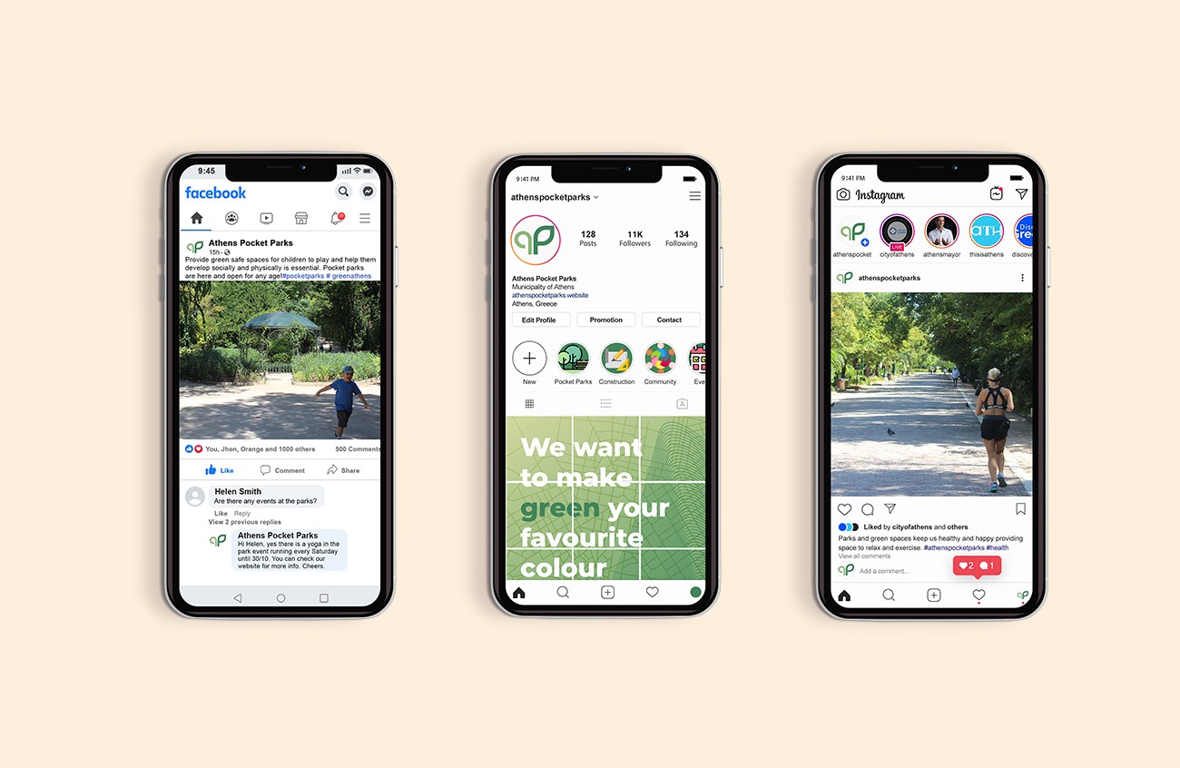 Pocket Parks campaign is a project focusing in sustainability, implemented by the Municipality of Athens in collaboration with external organisations aiming to transform abandoned urban lots into green, calm and natural spaces for the public to enjoy and relax. The purpose of the project was to create a design solution across a range of industry design platforms that will empower all community’s members to engage with this initiative, raise environmental literacy and increase brand awareness.